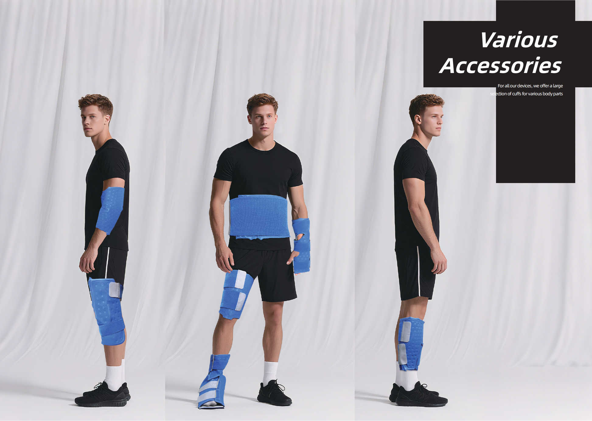 The system includes versatile therapy wraps that can be applied to various body parts such as the knee, shoulder, ankle, or calf, making it ideal for athletes, post-surgery recovery, or anyone managing joint and muscle pain.