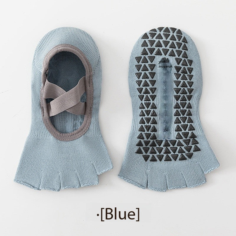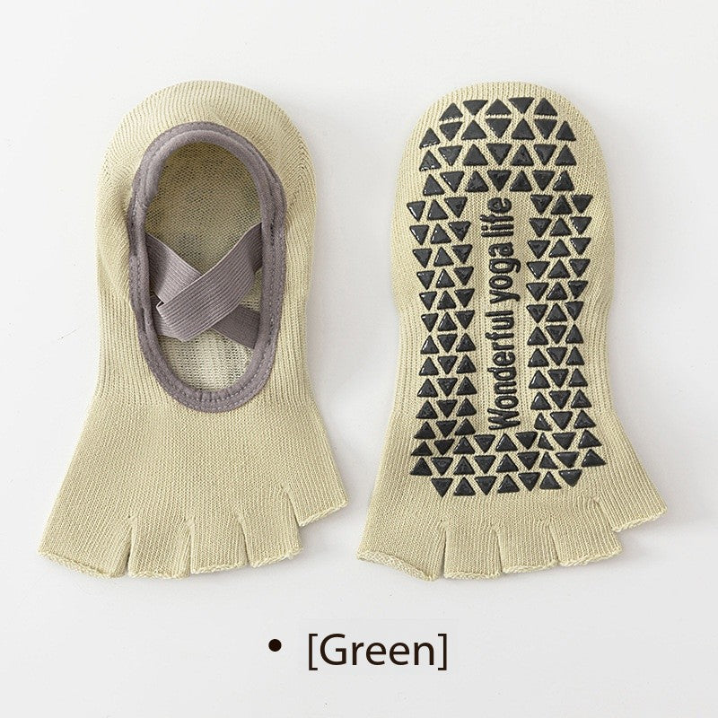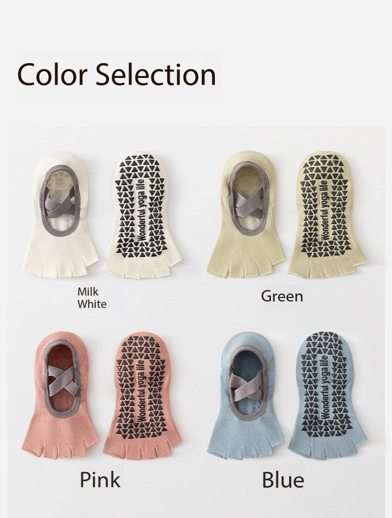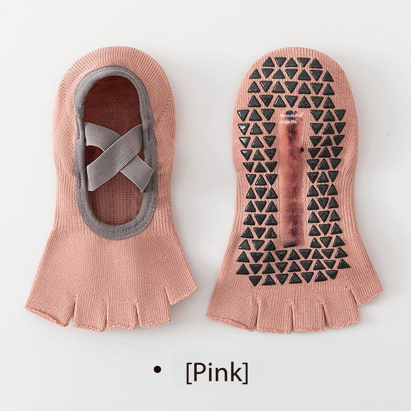 Women’s Open-Toe Five-Toe Pilates Socks – Cross-Strap Non-Slip Grip Socks with Cushion & Shock Absorption